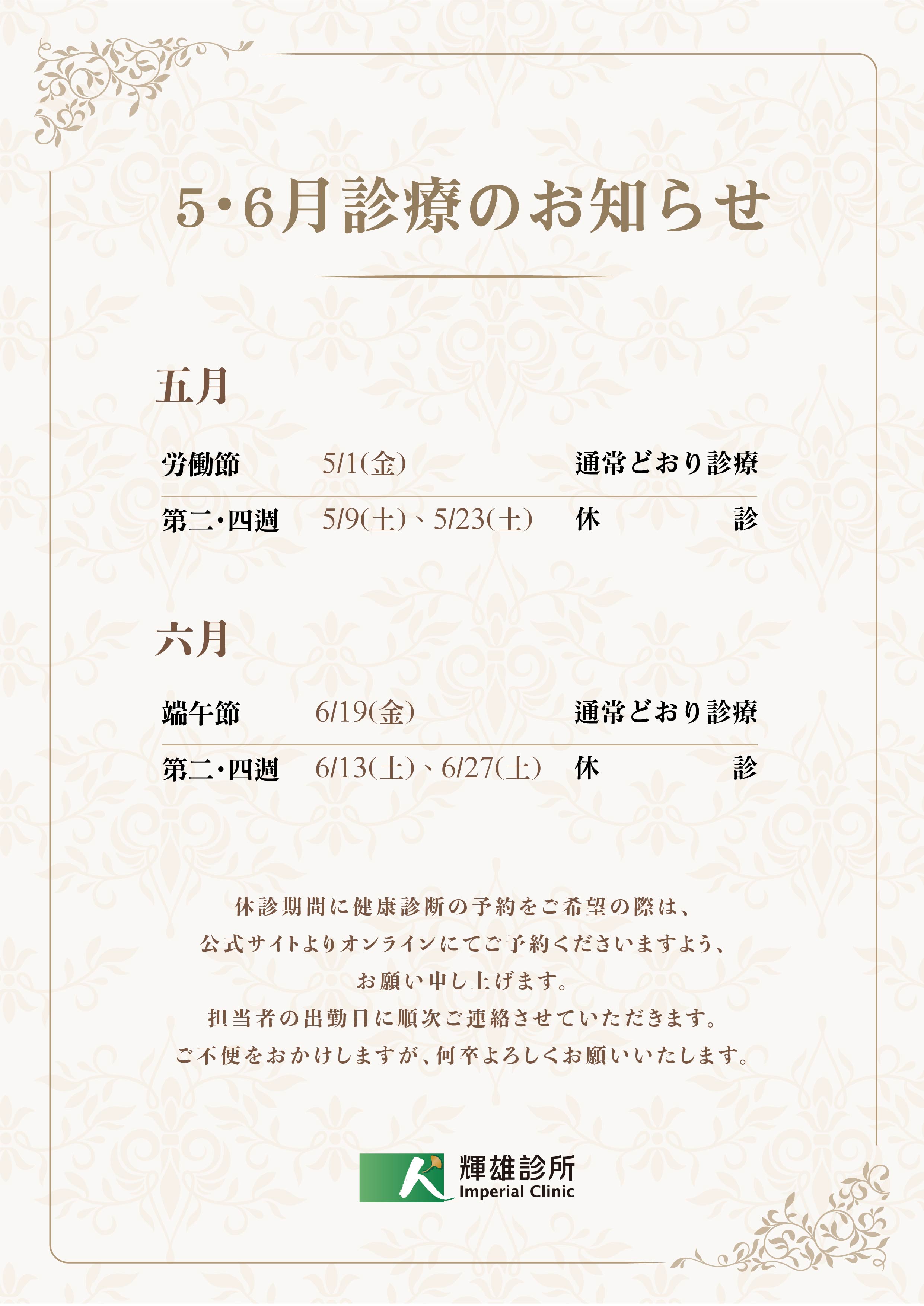 5/1(金)労働節 通常診療