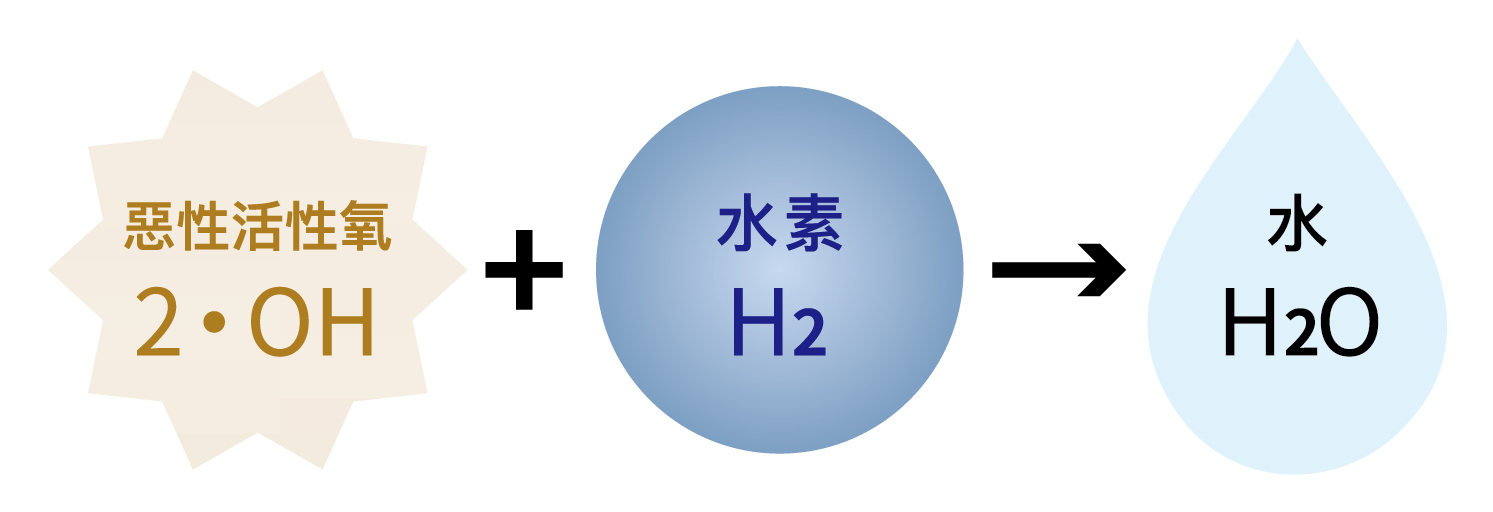 水素(氫)將惡性活性氧還原為對身體無害的水